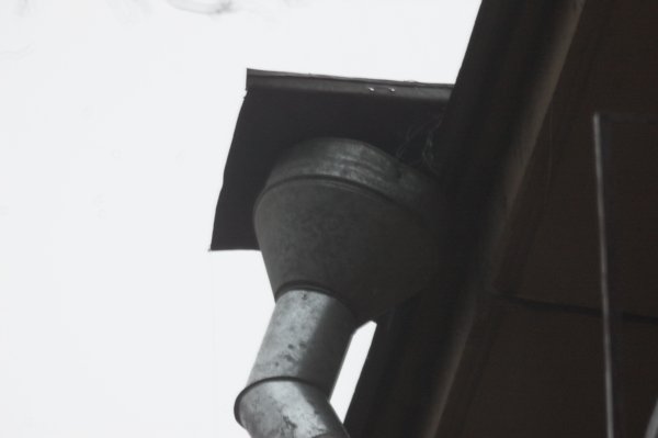 каждой водосточной трубы - козырёк, сливающий воду непосредственно